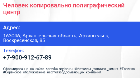 Человек, копировально-полиграфический центр по адресу 163046, Архангельская область, Архангельск, Воскресенская, 85 в дальнейшем Организация, размещена в следующих категориях: