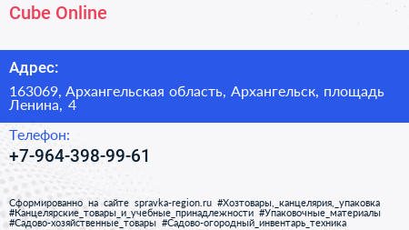 Cube Online по адресу 163069, Архангельская область, Архангельск, площадь Ленина, 4 в дальнейшем Организация, размещена в следующих категориях: