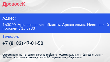 ДровосеК по адресу 163020, Архангельская область, Архангельск, Никольский проспект, 15 ст33 в дальнейшем Организация, размещена в следующих категориях: