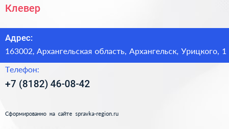 Клевер по адресу 163002, Архангельская область, Архангельск, Урицкого, 1 в дальнейшем Организация, размещена в следующих категориях: