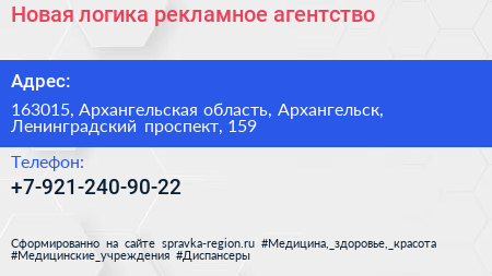 Новая логика, рекламное агентство по адресу 163015, Архангельская область, Архангельск, Ленинградский проспект, 159 в дальнейшем Организация, размещена в следующих категориях: