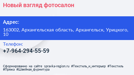 Новый взгляд, фотосалон по адресу 163002, Архангельская область, Архангельск, Урицкого, 10 в дальнейшем Организация, размещена в следующих категориях: