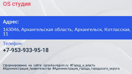 OS, студия по адресу 163046, Архангельская область, Архангельск, Котласская, 11 в дальнейшем Организация, размещена в следующих категориях: