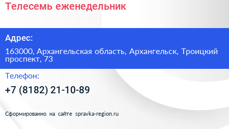 Телесемь, еженедельник по адресу 163000, Архангельская область, Архангельск, Троицкий проспект, 73 в дальнейшем Организация, размещена в следующих категориях: