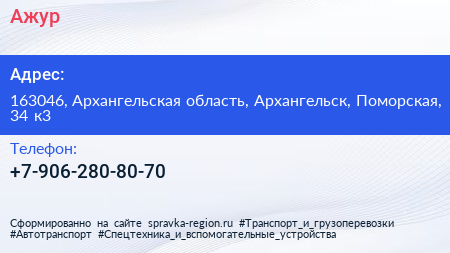 Ажур по адресу 163046, Архангельская область, Архангельск, Поморская, 34 к3 в дальнейшем Организация, размещена в следующих категориях: