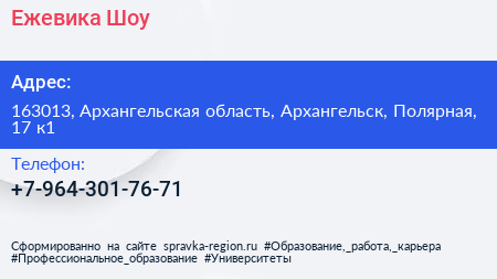 Ежевика Шоу по адресу 163013, Архангельская область, Архангельск, Полярная, 17 к1 в дальнейшем Организация, размещена в следующих категориях: