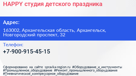 HAPPY, студия детского праздника по адресу 163002, Архангельская область, Архангельск, Новгородский проспект, 32 в дальнейшем Организация, размещена в следующих категориях: