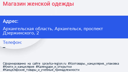 Магазин женской одежды по адресу Архангельская область, Архангельск, проспект Дзержинского, 2 в дальнейшем Организация, размещена в следующих категориях: