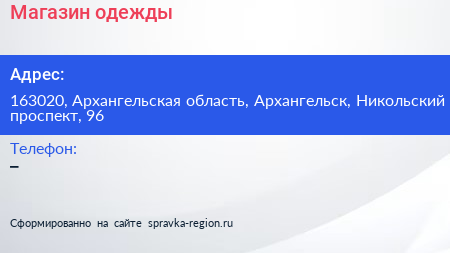 Магазин одежды по адресу 163020, Архангельская область, Архангельск, Никольский проспект, 96 в дальнейшем Организация, размещена в следующих категориях: