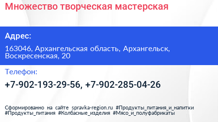 Множество, творческая мастерская по адресу 163046, Архангельская область, Архангельск, Воскресенская, 20 в дальнейшем Организация, размещена в следующих категориях: