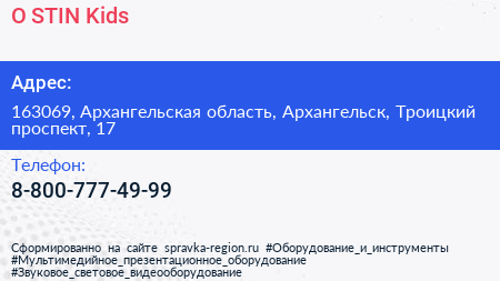 O`STIN Kids по адресу 163069, Архангельская область, Архангельск, Троицкий проспект, 17 в дальнейшем Организация, размещена в следующих категориях:
