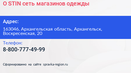 O`STIN, сеть магазинов одежды по адресу 163046, Архангельская область, Архангельск, Воскресенская, 20 в дальнейшем Организация, размещена в следующих категориях: