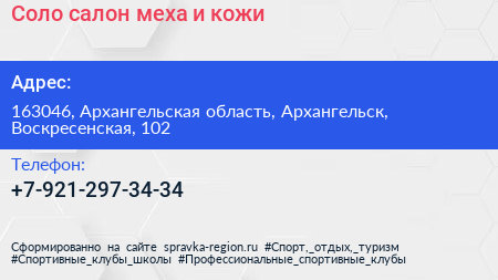 Соло, салон меха и кожи по адресу 163046, Архангельская область, Архангельск, Воскресенская, 102 в дальнейшем Организация, размещена в следующих категориях:
