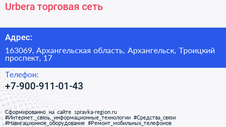 Urbera, торговая сеть по адресу 163069, Архангельская область, Архангельск, Троицкий проспект, 17 в дальнейшем Организация, размещена в следующих категориях: