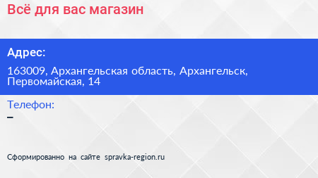 Всё для вас, магазин по адресу 163009, Архангельская область, Архангельск, Первомайская, 14 в дальнейшем Организация, размещена в следующих категориях: