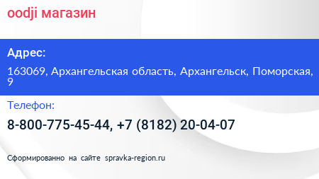 oodji, магазин по адресу 163069, Архангельская область, Архангельск, Поморская, 9 в дальнейшем Организация, размещена в следующих категориях: