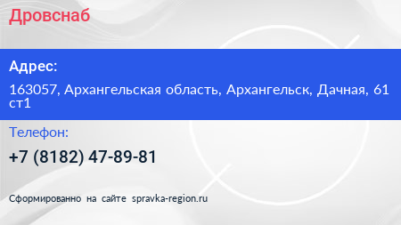 Дровснаб по адресу 163057, Архангельская область, Архангельск, Дачная, 61 ст1 в дальнейшем Организация, размещена в следующих категориях: