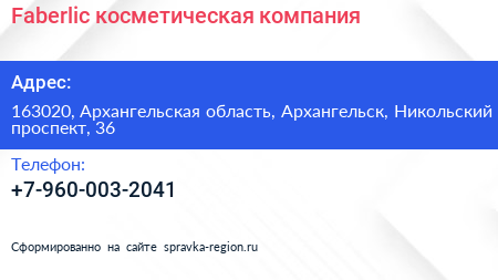 Faberlic, косметическая компания по адресу 163020, Архангельская область, Архангельск, Никольский проспект, 36 в дальнейшем Организация, размещена в следующих категориях: