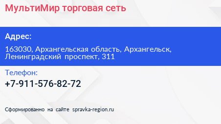 МультиМир, торговая сеть по адресу 163030, Архангельская область, Архангельск, Ленинградский проспект, 311 в дальнейшем Организация, размещена в следующих категориях:
