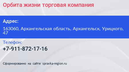 Орбита жизни, торговая компания по адресу 163060, Архангельская область, Архангельск, Урицкого, 47 в дальнейшем Организация, размещена в следующих категориях: