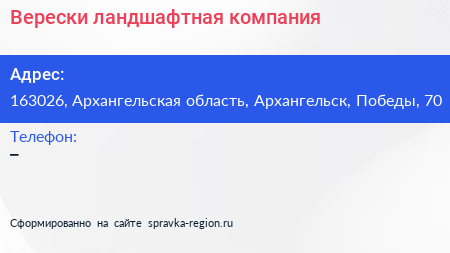 Верески, ландшафтная компания по адресу 163026, Архангельская область, Архангельск, Победы, 70 в дальнейшем Организация, размещена в следующих категориях: