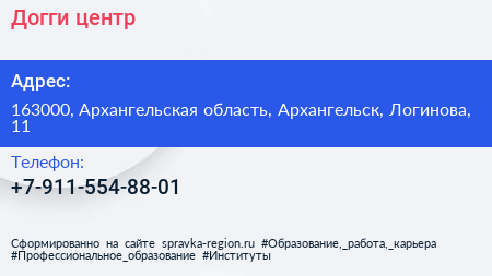 Догги-центр по адресу 163000, Архангельская область, Архангельск, Логинова, 11 в дальнейшем Организация, размещена в следующих категориях: