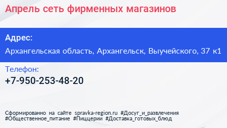 Апрель, сеть фирменных магазинов по адресу Архангельская область, Архангельск, Выучейского, 37 к1 в дальнейшем Организация, размещена в следующих категориях:
