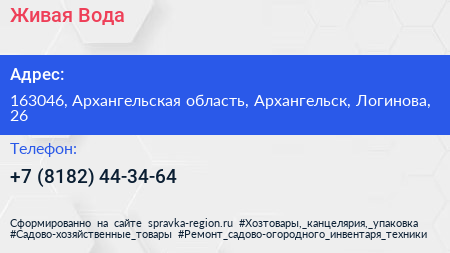 Живая Вода по адресу 163046, Архангельская область, Архангельск, Логинова, 26 в дальнейшем Организация, размещена в следующих категориях: