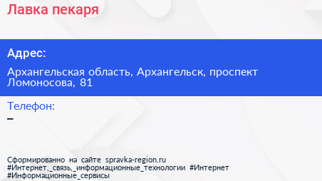 Лавка пекаря по адресу Архангельская область, Архангельск, проспект Ломоносова, 81 в дальнейшем Организация, размещена в следующих категориях: