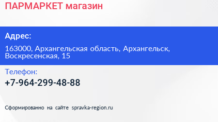 ПАРМАРКЕТ, магазин по адресу 163000, Архангельская область, Архангельск, Воскресенская, 15 в дальнейшем Организация, размещена в следующих категориях: