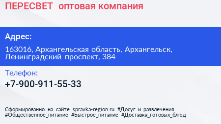 ПЕРЕСВЕТ+, оптовая компания по адресу 163016, Архангельская область, Архангельск, Ленинградский проспект, 384 в дальнейшем Организация, размещена в следующих категориях: