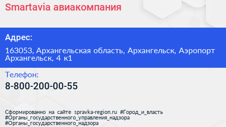 Smartavia, авиакомпания по адресу 163053, Архангельская область, Архангельск, Аэропорт Архангельск, 4 к1 в дальнейшем Организация, размещена в следующих категориях: