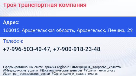 Троя, транспортная компания по адресу 163015, Архангельская область, Архангельск, Ленина, 29 в дальнейшем Организация, размещена в следующих категориях: