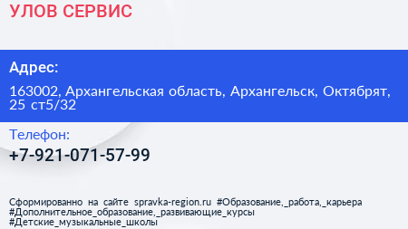 УЛОВ-СЕРВИС по адресу 163002, Архангельская область, Архангельск, Октябрят, 25 ст5/32 в дальнейшем Организация, размещена в следующих категориях: