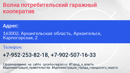 Волна, потребительский гаражный кооператив по адресу 163002, Архангельская область, Архангельск, Карпогорская, 2 в дальнейшем Организация, размещена в следующих категориях: