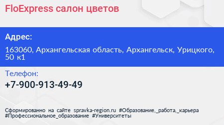 FloExpress, салон цветов по адресу 163060, Архангельская область, Архангельск, Урицкого, 50 к1 в дальнейшем Организация, размещена в следующих категориях: