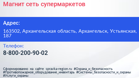 Магнит, сеть супермаркетов по адресу 163502, Архангельская область, Архангельск, Устьянская, 187 в дальнейшем Организация, размещена в следующих категориях:
