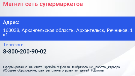 Магнит, сеть супермаркетов по адресу 163038, Архангельская область, Архангельск, Речников, 1 к1 в дальнейшем Организация, размещена в следующих категориях: