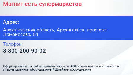 Магнит, сеть супермаркетов по адресу Архангельская область, Архангельск, проспект Ломоносова, 81 в дальнейшем Организация, размещена в следующих категориях:
