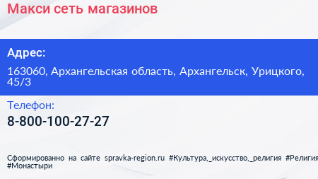Макси, сеть магазинов по адресу 163060, Архангельская область, Архангельск, Урицкого, 45/3 в дальнейшем Организация, размещена в следующих категориях: