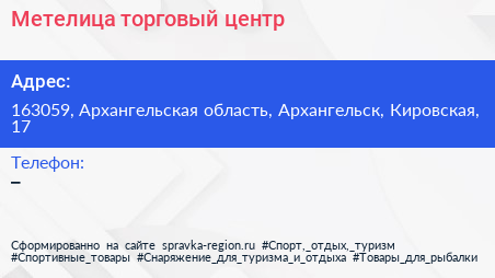 Метелица, торговый центр по адресу 163059, Архангельская область, Архангельск, Кировская, 17 в дальнейшем Организация, размещена в следующих категориях: