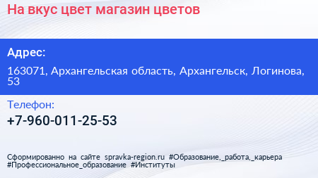 На вкус & цвет, магазин цветов по адресу 163071, Архангельская область, Архангельск, Логинова, 53 в дальнейшем Организация, размещена в следующих категориях: