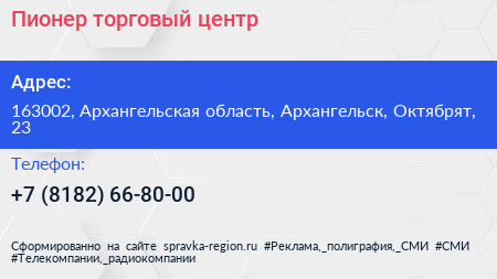 Пионер, торговый центр по адресу 163002, Архангельская область, Архангельск, Октябрят, 23 в дальнейшем Организация, размещена в следующих категориях: