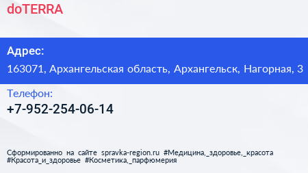 doTERRA по адресу 163071, Архангельская область, Архангельск, Нагорная, 3 в дальнейшем Организация, размещена в следующих категориях: