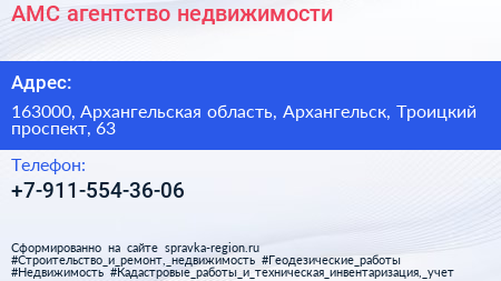 АМС, агентство недвижимости по адресу 163000, Архангельская область, Архангельск, Троицкий проспект, 63 в дальнейшем Организация, размещена в следующих категориях: