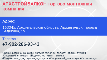 АРХСТРОЙБАЛКОН, торгово-монтажная компания по адресу 163045, Архангельская область, Архангельск, проезд Бадигина, 19 в дальнейшем Организация, размещена в следующих категориях:
