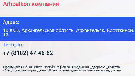 Arhbalkon, компания по адресу 163002, Архангельская область, Архангельск, Касаткиной, 13 в дальнейшем Организация, размещена в следующих категориях: