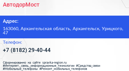 АвтодорМост по адресу 163060, Архангельская область, Архангельск, Урицкого, 47 в дальнейшем Организация, размещена в следующих категориях: