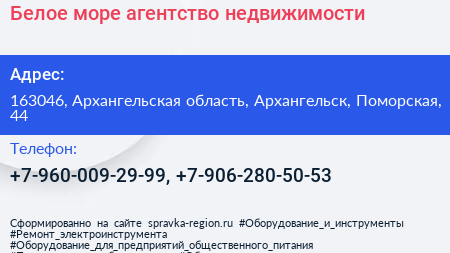 Белое море, агентство недвижимости по адресу 163046, Архангельская область, Архангельск, Поморская, 44 в дальнейшем Организация, размещена в следующих категориях: