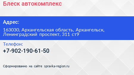 Блеск, автокомплекс по адресу 163030, Архангельская область, Архангельск, Ленинградский проспект, 311 ст9 в дальнейшем Организация, размещена в следующих категориях: